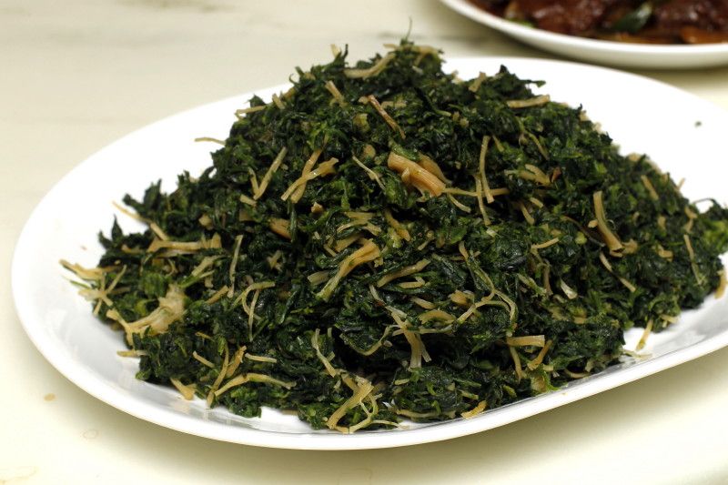 先焯一下,沥乾,剁碎,加入泡发蒸透的瑶柱咝,少许瑶柱汁,再加入调味和香油抖匀即可,方便快捷!