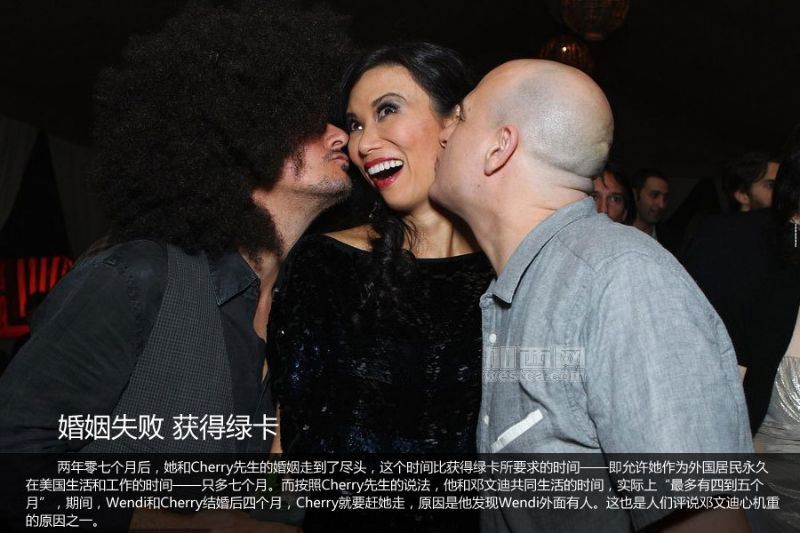 1992年9月,她和Cherry先生两年零七个月的婚姻走到了尽头,这个时间比获得绿卡所要求的时间只多七个月,这也是后来人们评说邓文迪心机重的原因之一。