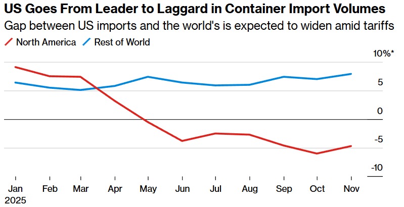 美国集装箱进口暴跌看不到尽头,“世界贸易在脱离美国发展” - 图片幻灯展示
