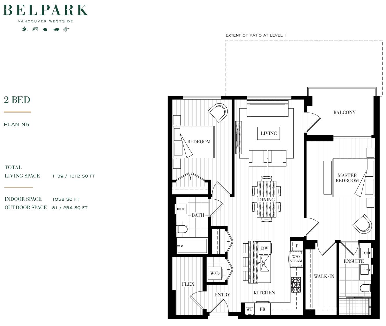 UNIT N103 - N5戶型: 2臥室,面積1139-1312平方尺