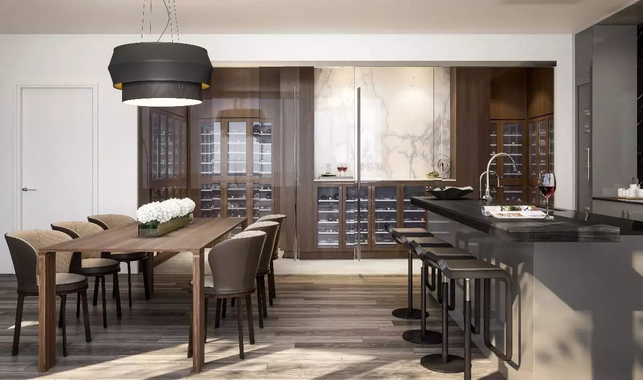 走進樣板套間,你一定會對眼前的設計一見鍾情。廚房的意大利櫥櫃、一體化門把手、輕柔閉合式抽屜,都會讓你愛不釋手。鑲嵌在櫥櫃下方的LED燈柔和地投射在爐灶上方的背板和精心設計的花崗岩台面,顯得典雅高貴。廚房中央島設有延伸的木桌,給廚藝愛好者更多施展身手的空間。包括組合式蒸汽烤箱等全套來自德國Gaggenau的高級廚具,契合你健康的飲食起居需要。