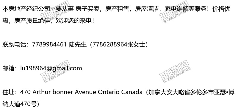 > 本房地产经纪公司主要从事 房子买卖,房产租售,房屋清洁,家电维修等服务!价格优惠,房产质量绝佳,欢迎您的来电!