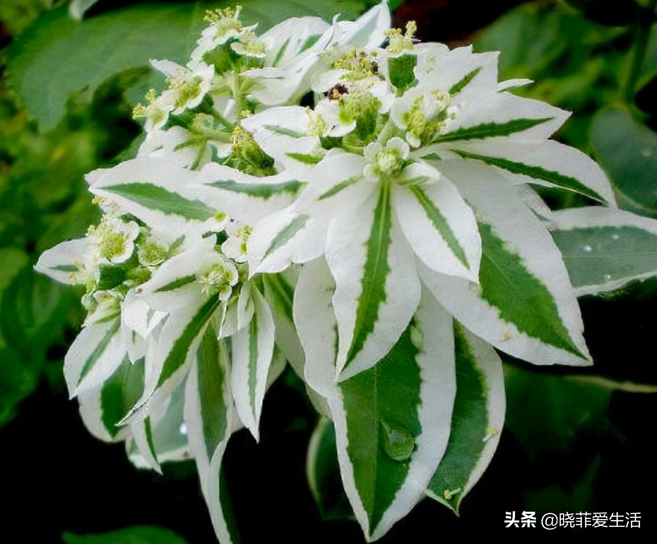 高山積雪,又叫銀邊翠,因為它的葉子上自帶清新漂亮、素雅溫馨的花紋,也叫它“葉上花”,它是一款深受女性喜歡的花材,常用於花藝作品中的配花材料。但是,它的汁液有毒,被稱為浪漫殺手。