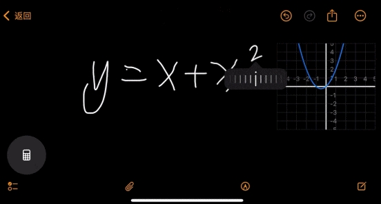 當然蘋果確實有高傲的資本,盡管花的時間長了些,但它確實做到了,iPadOS 18 自帶的計算器,除了支持常規計算,它還支持手寫計算,可以根據手寫變量實時更新計算結果,甚至還能直接畫出函數曲線。
