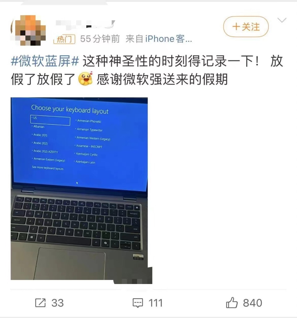 在微博上,“感谢微软,提前放假”话题冲上热搜。