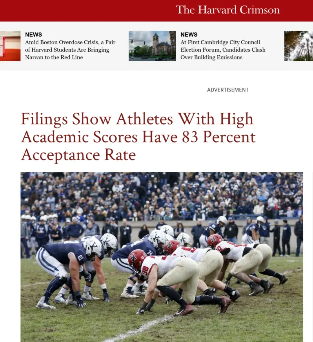 曾经哈佛大学的一份报告显示,2027届整体录取率只有3.41%,但体育特招生招生的录取率高达83%。