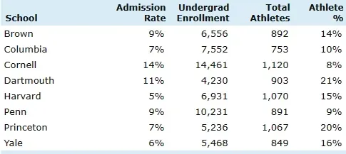 不仅录取率高,在藤校学生中,体育特招生的占比也非常高。