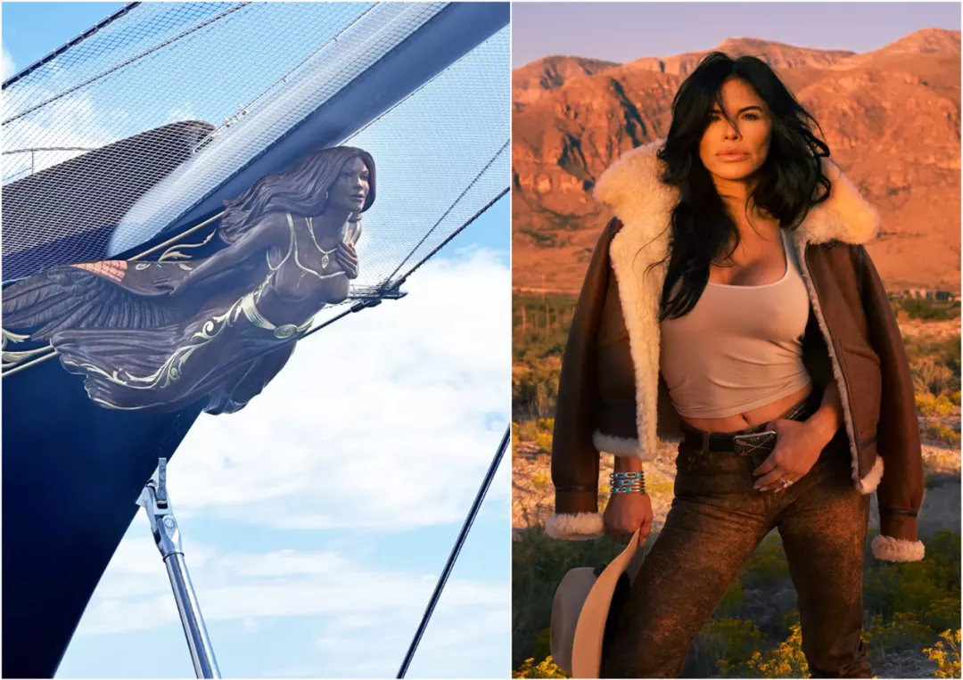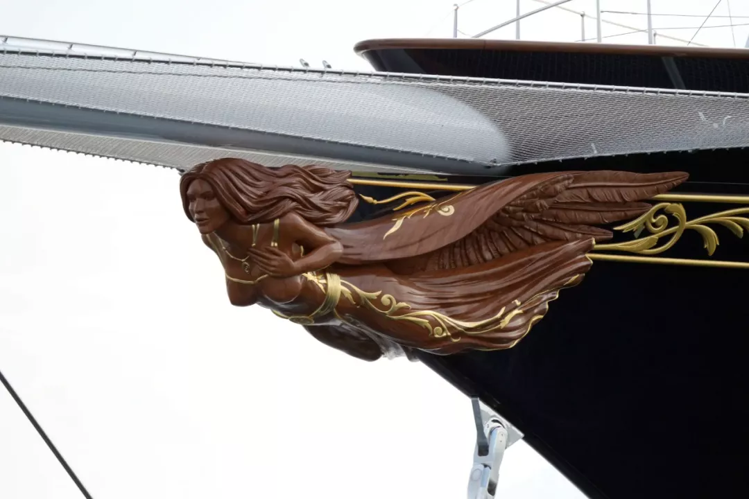 雕塑是木质的,位于游艇的船头,与桑切斯惊人的相似。
