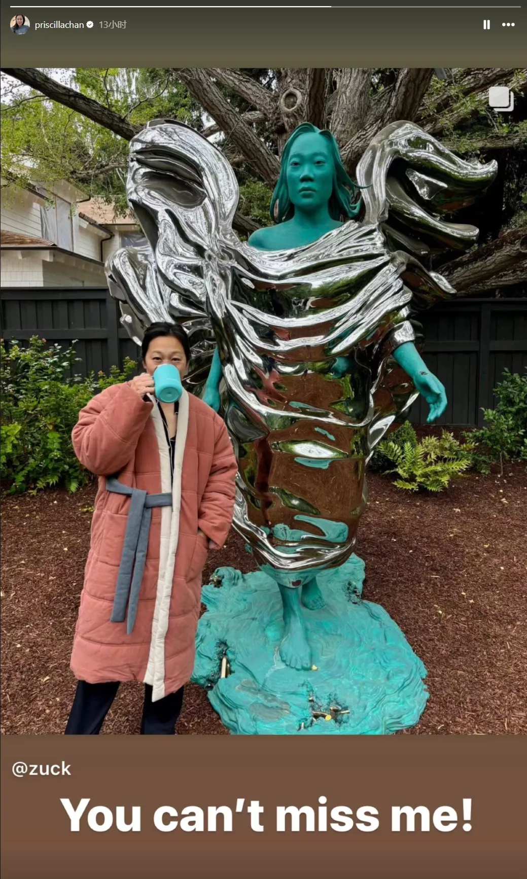 扎克伯格给华裔妻子送了个巨型雕像 网友:蜥蜴人实锤了