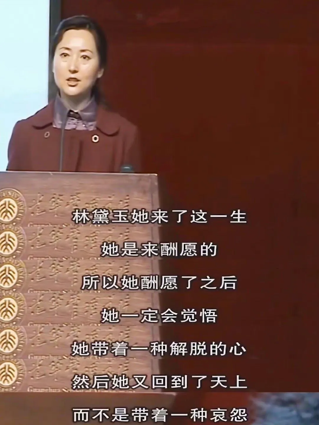 不仅如此,她对林黛玉还有其独到的见解,认为她的结局不是带着哀怨的,酬愿后的她是觉悟了,带着一颗解脱的心回到天上。