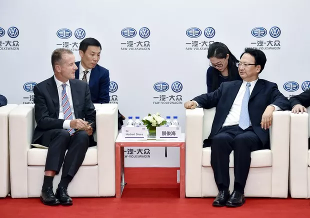 前吉林省委书记景俊海,2018年11月21日在长春市会见德国大众汽车公司总裁赫尔贝特?迪斯。