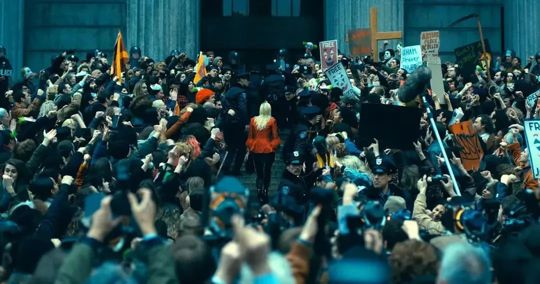 陪審團一致認為亞瑟該死,就在定罪的瞬間,外面瘋狂的小丑們炸毀了法庭,舊秩序就此毀滅。