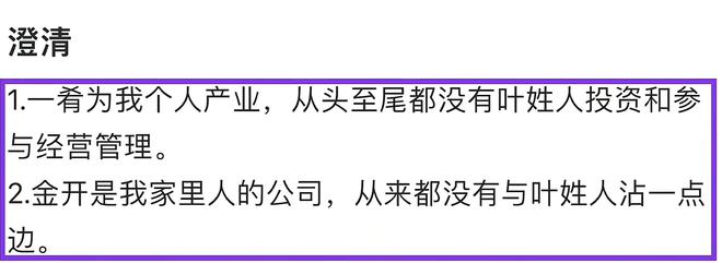 但她的前夫出來澄清過:為我個人產業,從來沒有葉姓人沾邊。