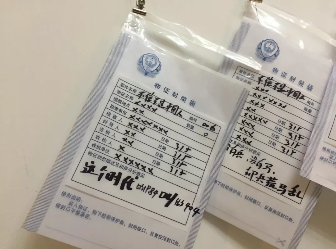 收錄了60條近兩年來的網絡流行語,寫在物證袋上