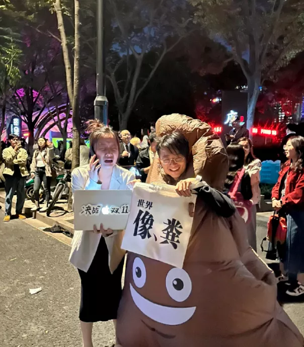 在这里,你能看到穿着印有“哪里贵了”字样黑色T恤的人、老干妈商标上的“陶华碧”、脑后顶着一轮光轮的“奥特曼”,以及经典永流传《甄嬛传》中安陵容坐船献唱、甄嬛滴血验亲的名场面。