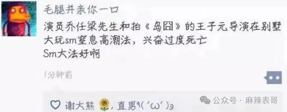 比如这个“乔任梁经纪公司”说的话,让网友浮想联翩。