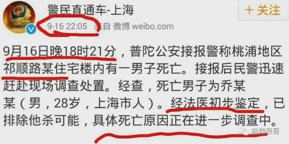 原本大家正在唏嘘,感叹,等待具体调查,但突然之间网上传出乔任梁的死因,比警方调查还快。