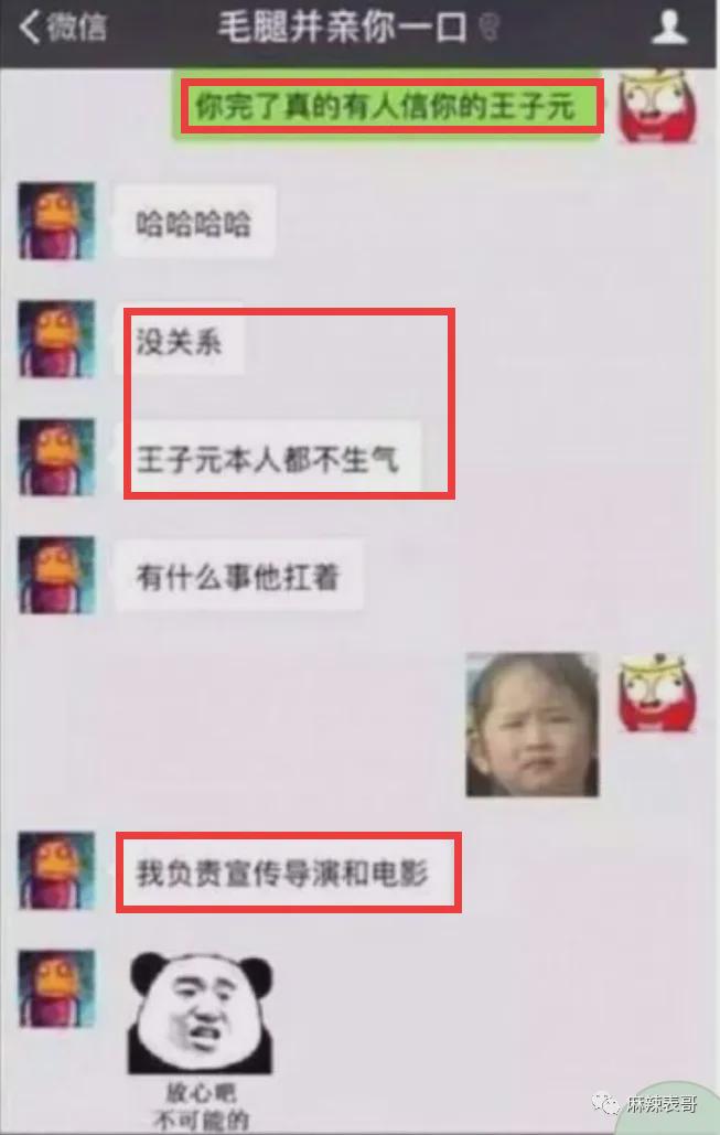 造谣的回:哈哈哈哈,王子元本人都不生气,有什么事他扛着,我负责宣传导演和电影的。