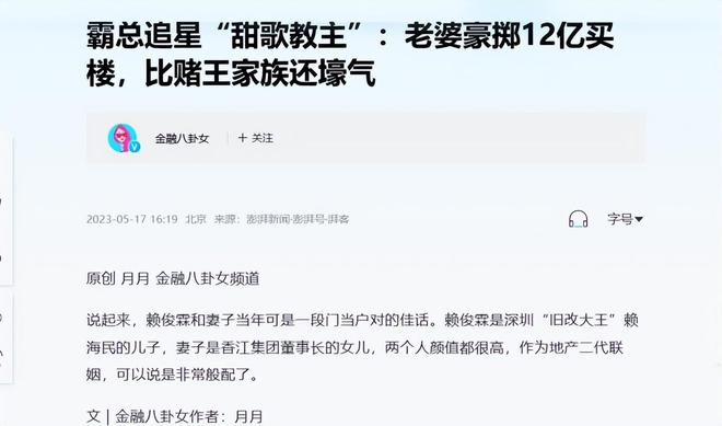 霸总追星“甜歌教主”:老婆豪掷12亿买楼,比赌王家族还壕气丨金融八卦女