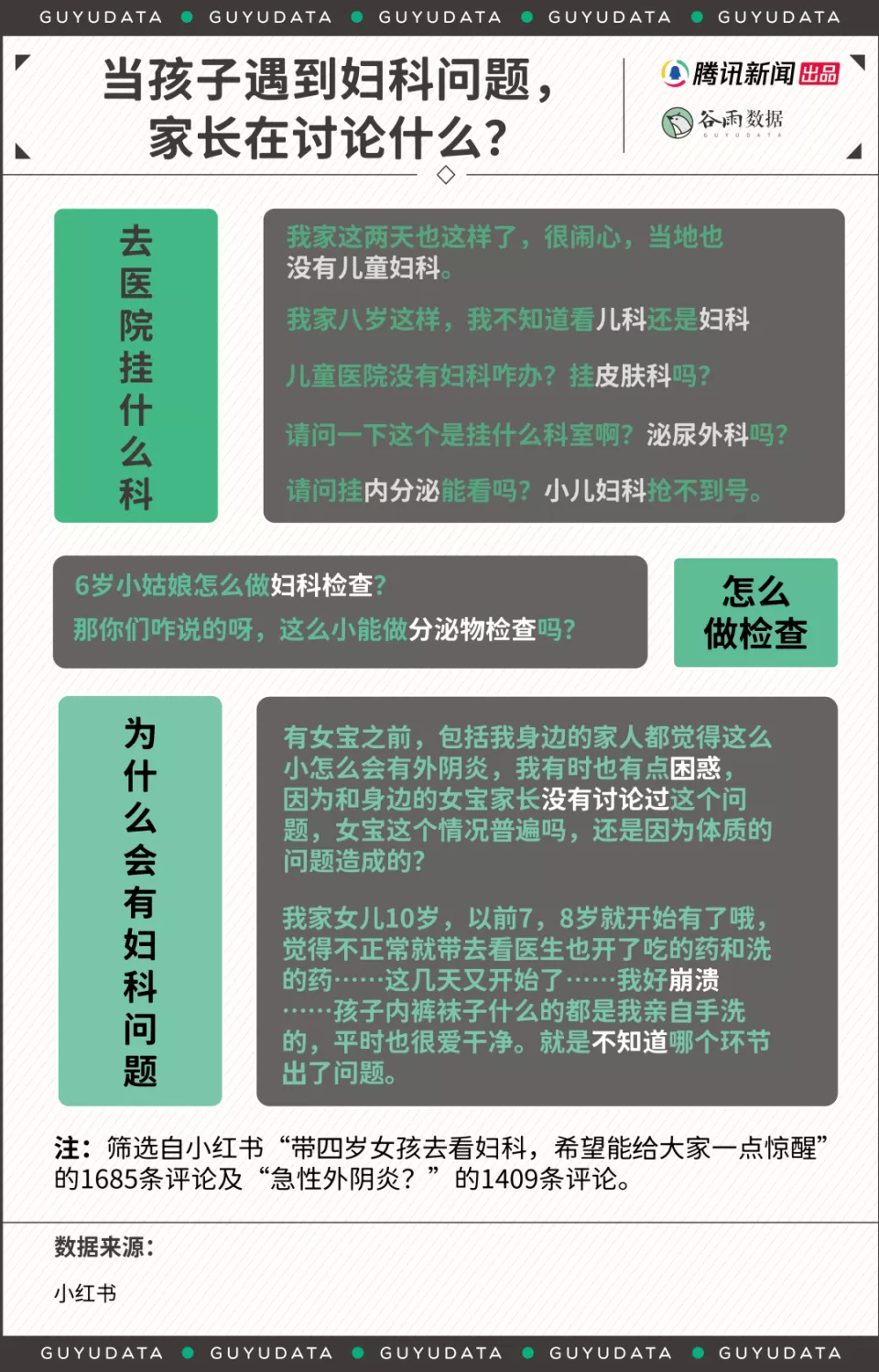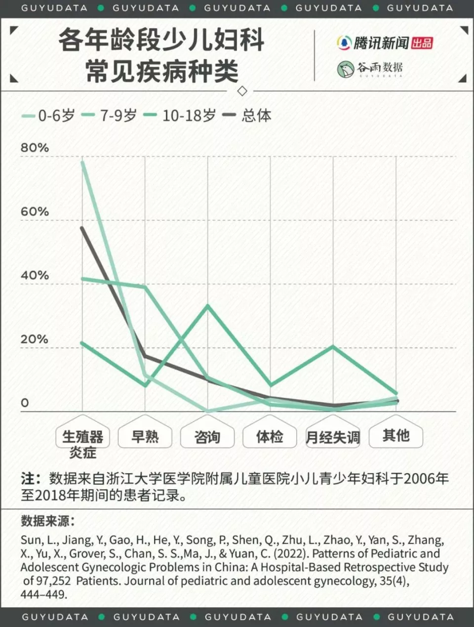 10岁之后,则是面临青春期生长发育,所以相关的咨询、体检,以及月经相关的问题是大多数,阴道炎的患者只占两成。