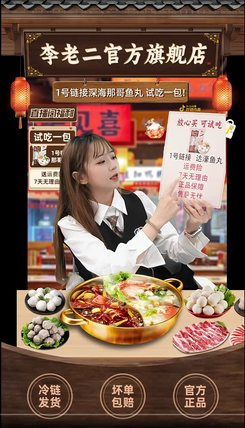 实际上也确实如此。许创盛的直播间没有太多花哨的玩法,他只是滚瓜烂熟地给消费者讲述产品的口感、优惠机制。在他面前,一盆热腾腾的火锅永远冒着热气,牛肉丸围摆在一旁,光透过屏幕看,唾液已不自觉开始分泌。