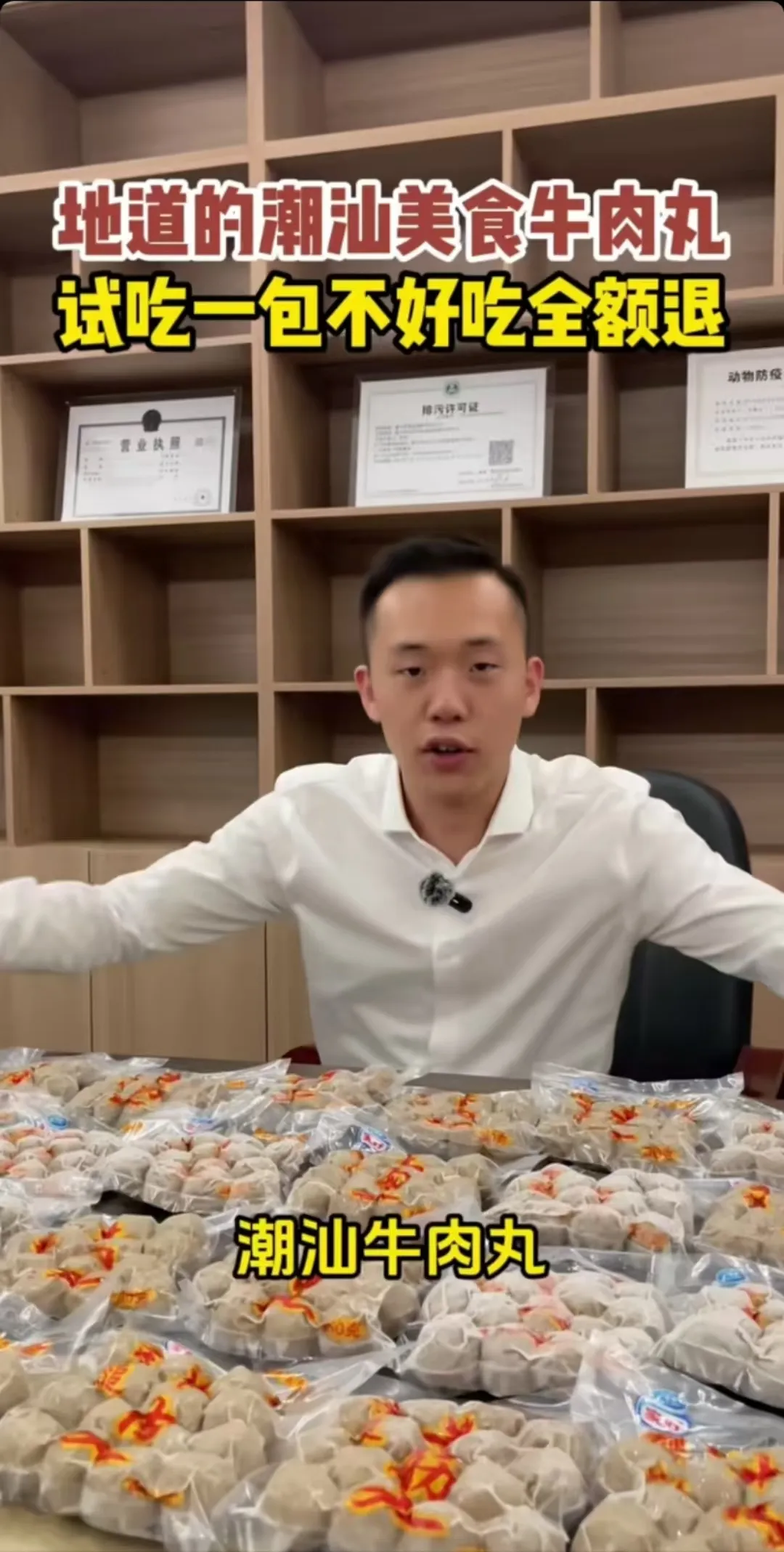 一上来,李振泽就选择了直播和短视频。开始之前,他做过调查,鱼丸、牛肉丸这些品类在整个电商圈的销售面积很大,在抖音电商上,光牛肉丸就是千亿级的单品。