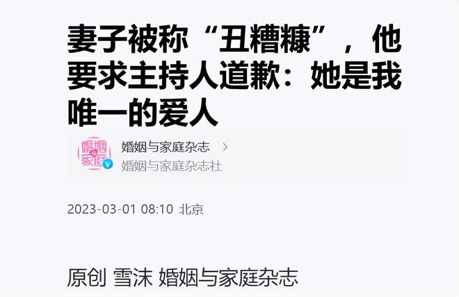 妻子被稱“丑糟糠”,他要求主持人道歉:她是我唯一的愛人丨婚姻與家庭雜志