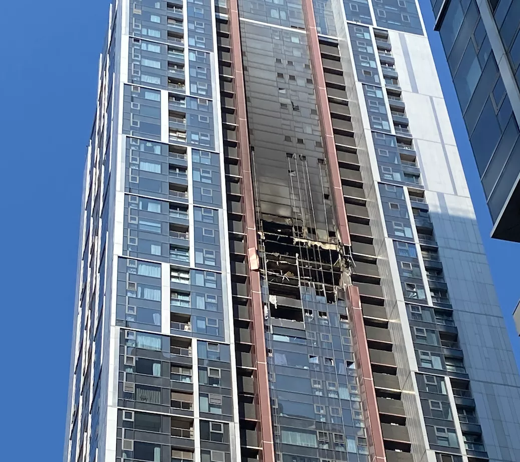 当时,万斌正开车往姐姐家赶。堵在路上的他也刷到了现场视频,姐姐头发烧焦了,“她已经非常努力地挤到了一个房间,唯一没有起火的。”她坐在房子边缘缺口处,面前是29层高、毫无阻隔的天空与高楼。