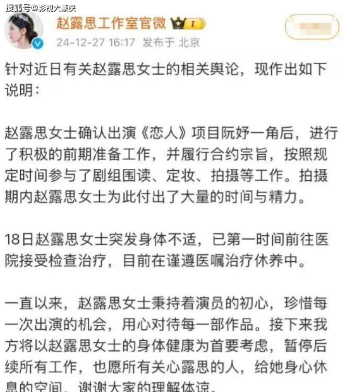 不过在赵露思生病一事被曝光之后,她的团队也很快出面发声。