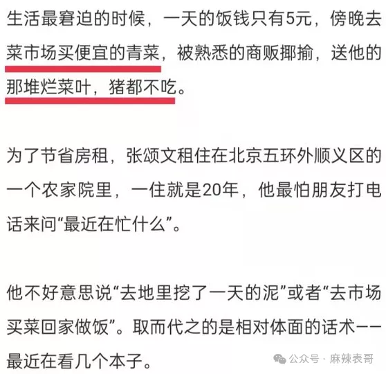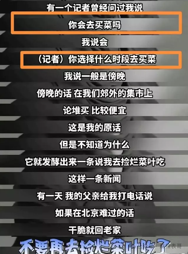 但我也找到,他曾经在另一个采访里确实提到自己捡烂菜叶吃。