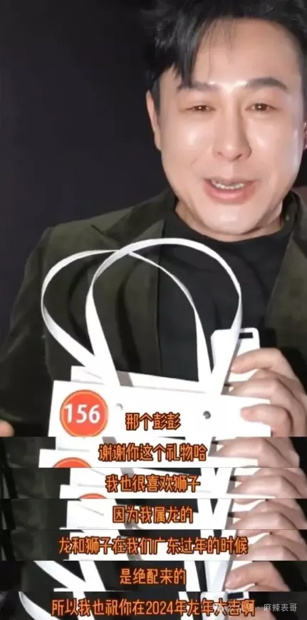 他属龙,又是广东人,广东过年的时候龙和狮子是绝配,他也祝彭昱畅龙年大吉。一下子就把礼物拔高了。
