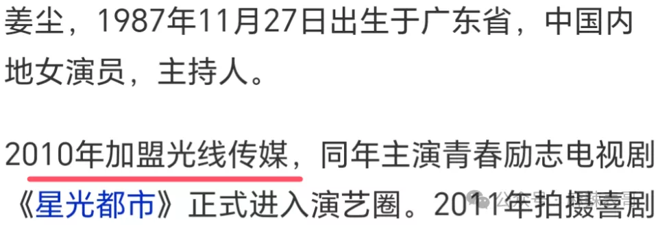 姜尘是2010年加盟光线传媒,也就是2010年去学的表演,认识的家暴男友。