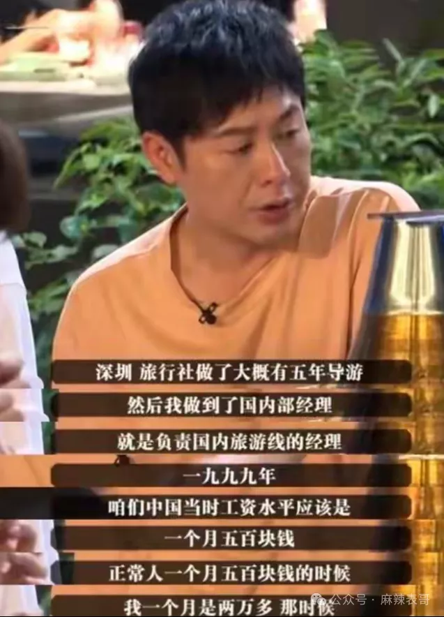 据张颂文说,自己做导游大概做了5年,从普通导游做到经理的位置,当时别人平均一个月500块,他拿2万块。
