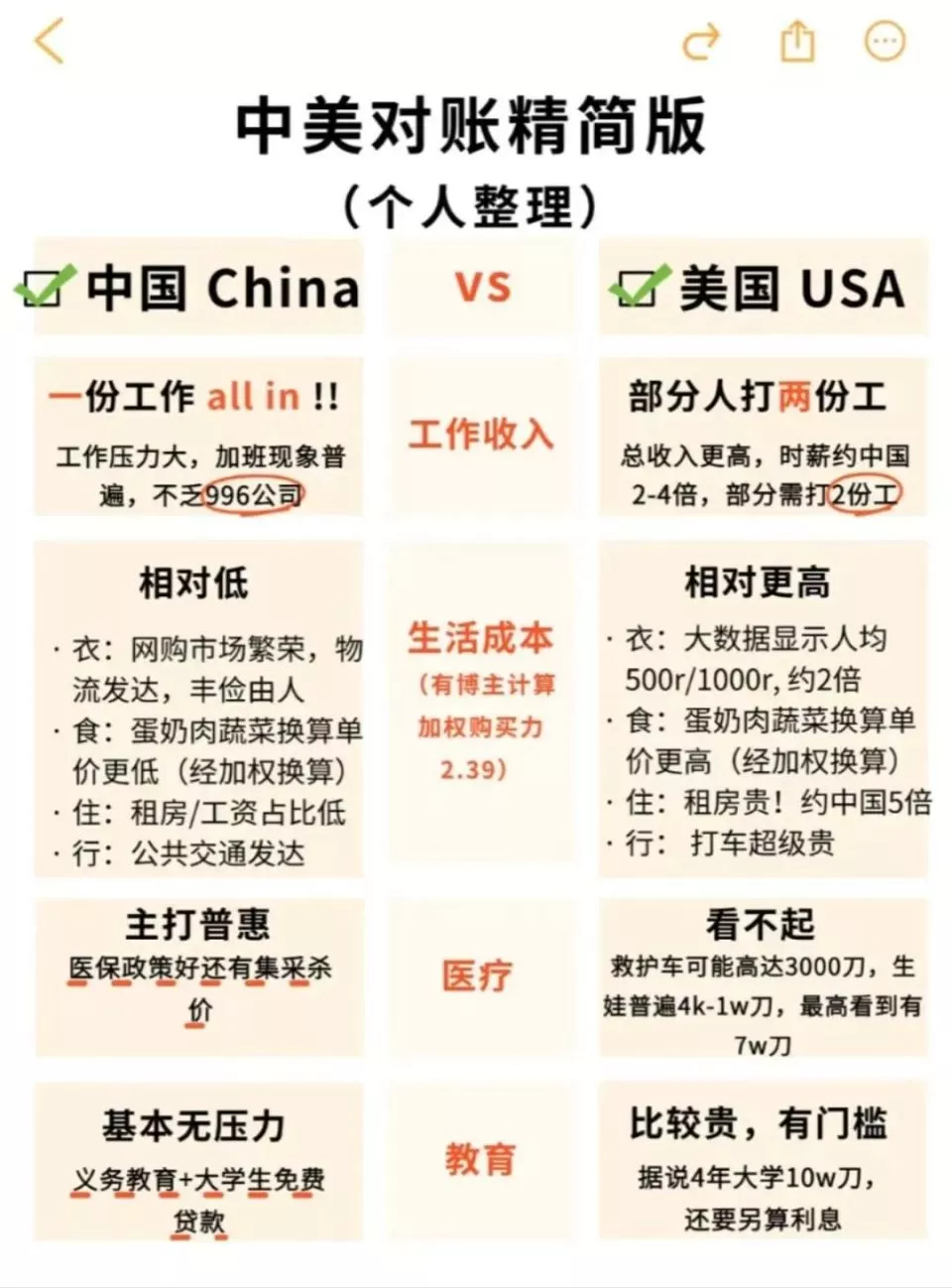美国朋友也同样,知道中国的食物和医保便宜,但不知道到底多少钱。不聊不知道,一聊所有人都吓了一大跳,原来网上的很多信息都是假的,大家都不容易。