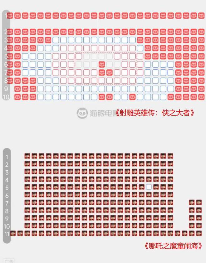 连犄角旮旯都爆满的就是《哪吒2》,只有犄角旮旯爆满的就是《射雕英雄传》。