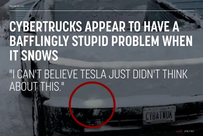 进入冬季,部分车主发现,雪会直接覆盖 Cybertruck 的前脸,导致车灯几乎完全失去照明功能,而且该车没有传统雨刷,冰雪天气下驾驶安全性堪忧。