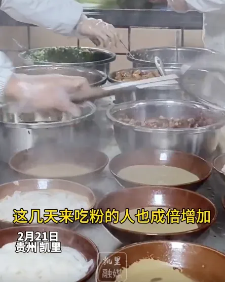 殡仪馆经理接受媒体采访时直言,“贵州凯里米粉十分出名,其原料主要是本地的手工米粉,肉都是当天采购,十分新鲜,且大骨汤也是当天现熬,主打一个新鲜、食材好。”