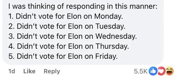 图源|脸书@Alt National Park Service帖子一出,评论区瞬间炸锅。有网友一本正经地写道:“我的五大成就?周一到周五都没给埃隆(马斯克)投票!”