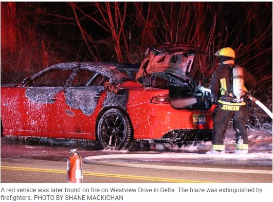 三角洲警方后来在第 64 大道和 Westview 大道附近发现一辆红色道奇 Charger 着火。大火被消防员扑灭。