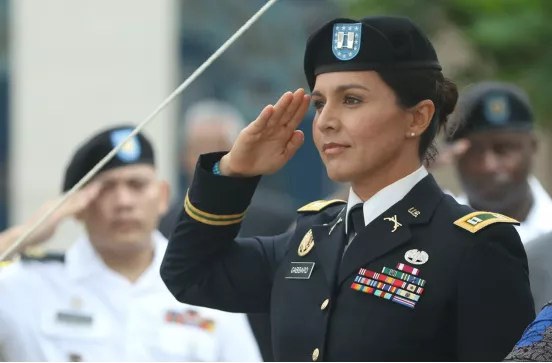 美国有线电视新闻网(CNN)报道,在成为美国夏威夷州众议院最年轻的女性议员一年后,年仅22岁的她选择加入夏威夷陆军国民警卫队。2004年,她以医疗兵身份被派往伊拉克,第一次走进了硝烟弥漫的战场。