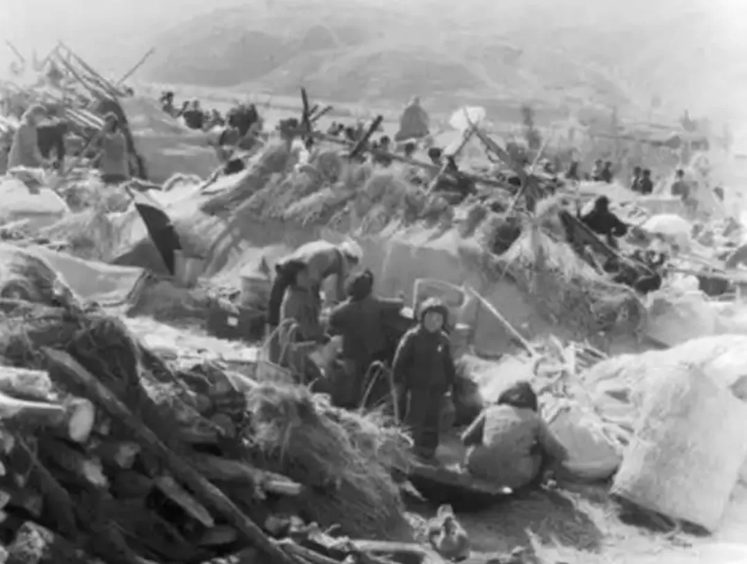 震前热得大家无法入睡,天亮后却又变得寒冷不堪。灾民们找来柴火,点燃取暖。但很快就有几个民兵赶来,命令大家赶快把火灭掉。