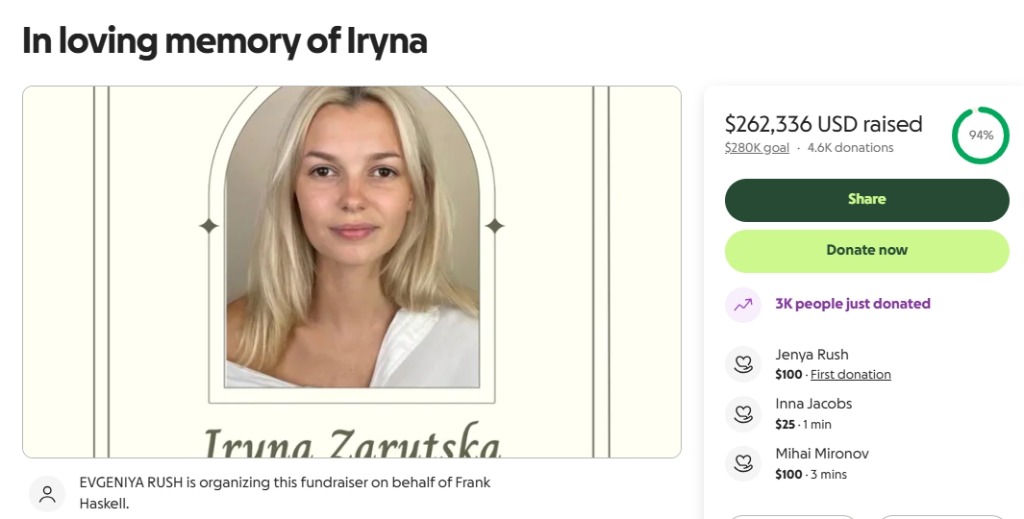 “这对她的家人来说是无法弥补的损失。我们发起了这项募捐活动,希望在这个令人心碎的时刻,支持瓦莱丽亚(伊琳娜的母亲)和她的亲人,并帮助他们支付意外开支”。