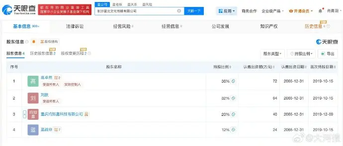 经营风险信息显示,今年7月,长沙蓝北文化传媒有限公司因未依照规定的期限公示年度报告,被长沙市雨花区市场监督管理局列入经营异常名录。