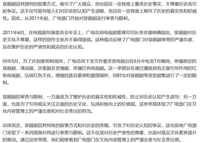如果被和諧請直接搜“穿越劇尊重歷史”,就可以在搜索引擎上搜到相關發文。