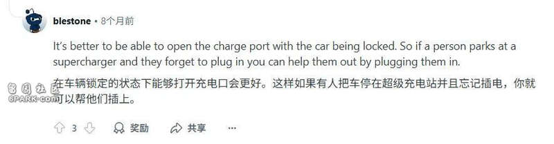 甚至因为这个特性,对于一些长占特斯拉超充站的特斯拉,大家也会帮 ta 插上充电枪,助力积攒占位费。