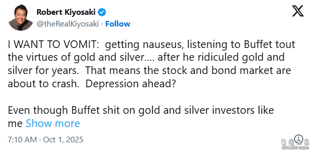 羅伯特清崎則立即抓住機會,對巴菲特展開批評。他在社群平台X上狠酸:「惡心到我要吐了」,不過他話鋒一轉接著表示:「多年來,巴菲特一直看不起像我這樣的黃金和白銀投資人,但如今他突然轉向支持。