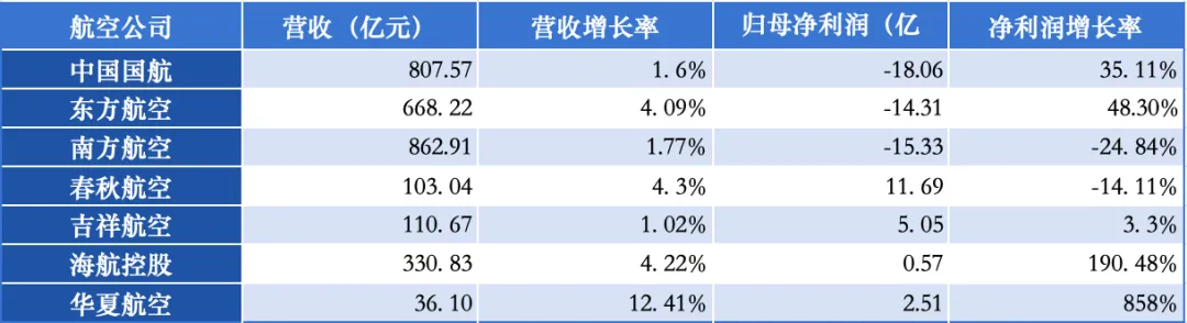 另外三家民营上市航司吉祥航空(603885.SH)、海航控股(601221.SH)和华夏航空(002928.SZ)也都在今年上半年获得盈利。