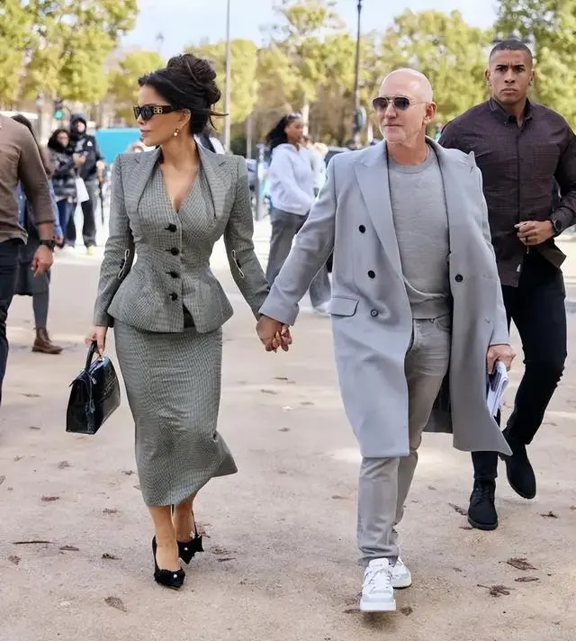 这是因为夫妇俩罕见地穿上了情侣装,双双选择了灰色调的服装。虽说现年55岁的桑切斯在和亚马逊创始人恋爱并结婚后,总是尽可能地炫耀自己的购买力,但她的丈夫却很少努力配合她,两个人总是各穿各的,但这一次颇有些有意秀恩爱的感觉,只不过效果实在不尽如人意。