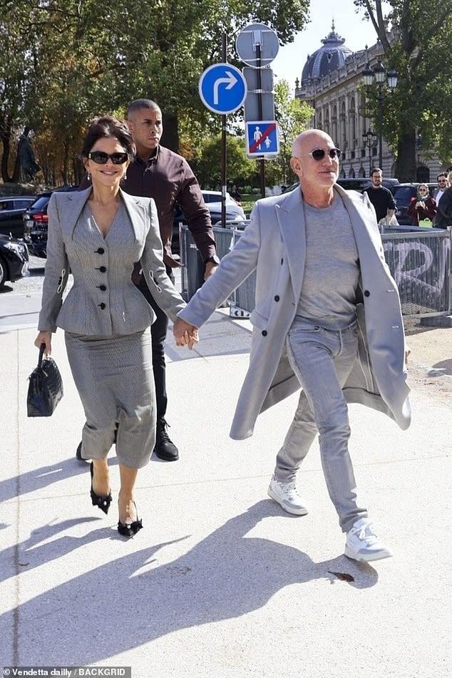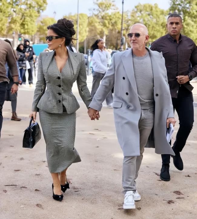 這是因為夫婦倆罕見地穿上了情侶裝,雙雙選擇了灰色調的服裝。雖說現年55歲的桑切斯在和亞馬遜創始人戀愛並結婚後,總是盡可能地炫耀自己的購買力,但她的丈夫卻很少努力配合她,兩個人總是各穿各的,但這一次頗有些有意秀恩愛的感覺,只不過效果實在不盡如人意。