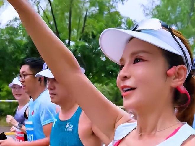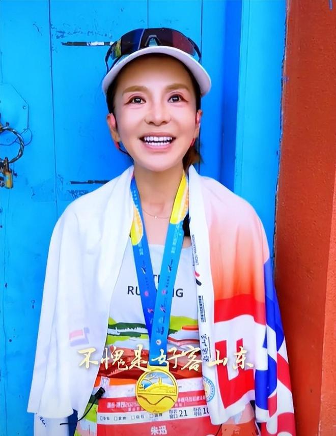 10月4号,朱迅参加了山东临朐的马拉松,还是跟之前一样,穿的很休闲,戴着帽子跟朋友们一起,那天还下了小雨,全程都是在雨中完成的。